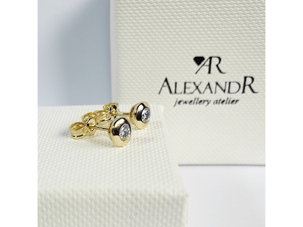 Diamantové náušnice Bezel pecky 5.5mm žluté zlato