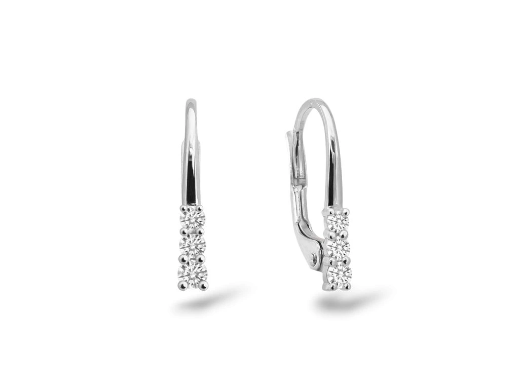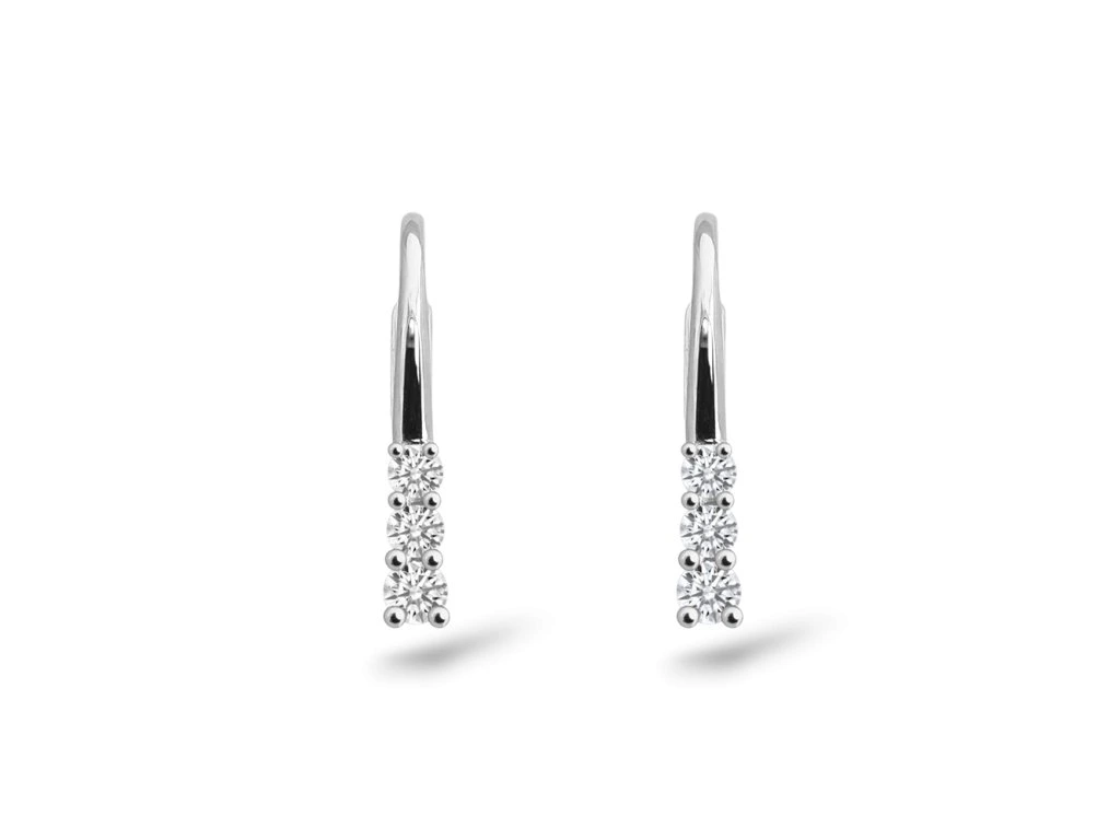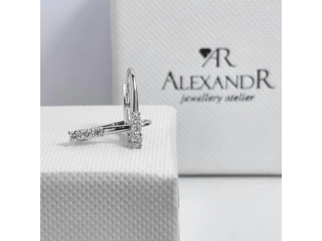 Náušnice z bílého zlata, každou náušnici zdobí diamanty o průměru 1.7mm,1.9mm a 2.0mm, které jsou vsazené do řady. Náušnice jsou ručně vyrobené v našem ateliéru.