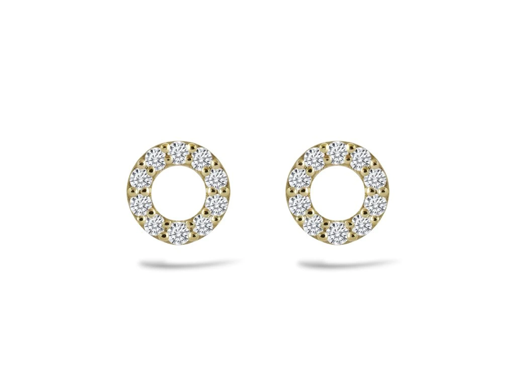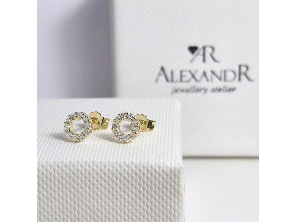 Dámské diamantové náušnice, žluté zlato, diamanty v briliantovém brusu tvoří tvar kroužku. Náušnice se zapínají na puzetu.