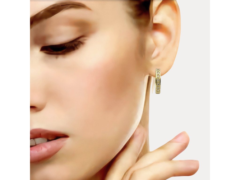 Náušnice ze žlutého zlata zdobí celkem 14 zářivých diamantů o průměru 2.0mm, které jsou vsazené do řady.