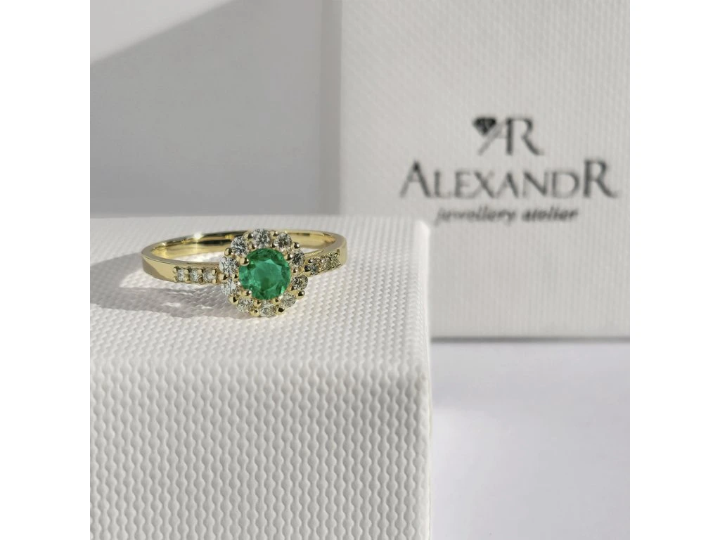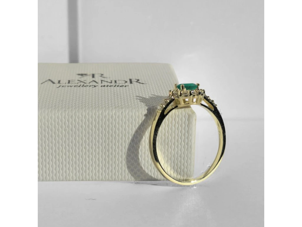 Elegantní zlatý prsten se smaragdem a diamanty žluté zlato