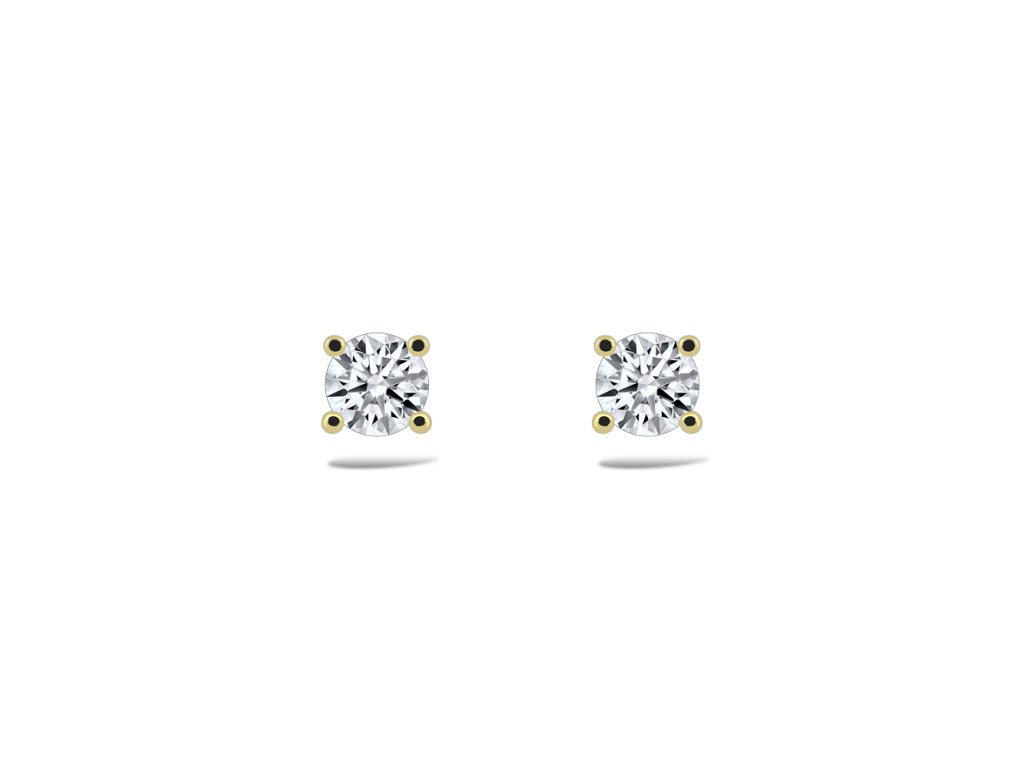 Jemné náušničky ze žlutého zlata zdobí zářivý diamant v briliantovém brusu o průměru 2.9mm zasazeným do čtyř krapen. Náušnice se zapínají na puzetu a jsou vhodné i pro mladé slečny.