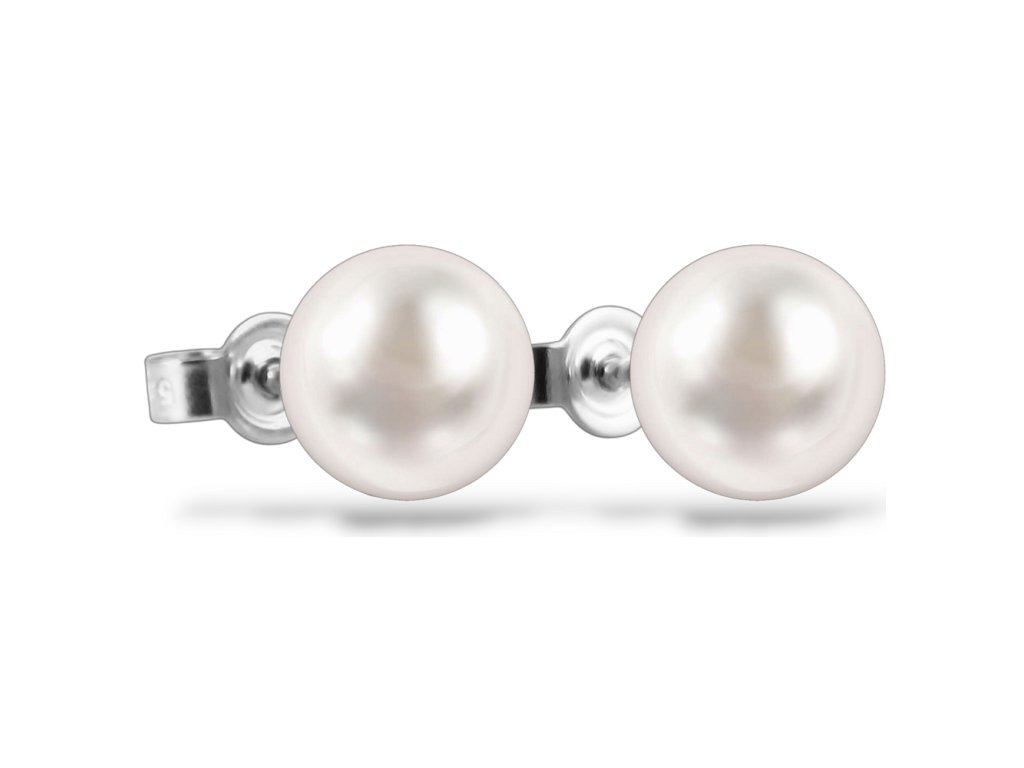 Jemné náušničky z bílého zlata zdobí sladkovodní perly o průměru 8.0mm. Náušnice se zapínají na puzetu a jsou vhodné i pro mladé slečny.