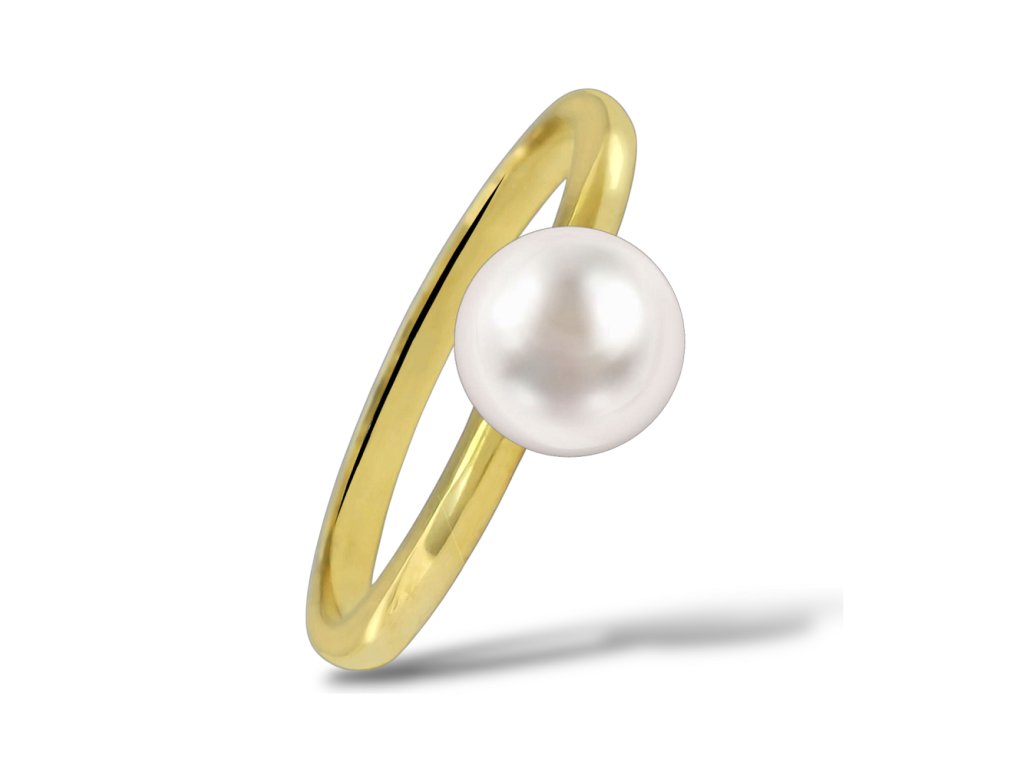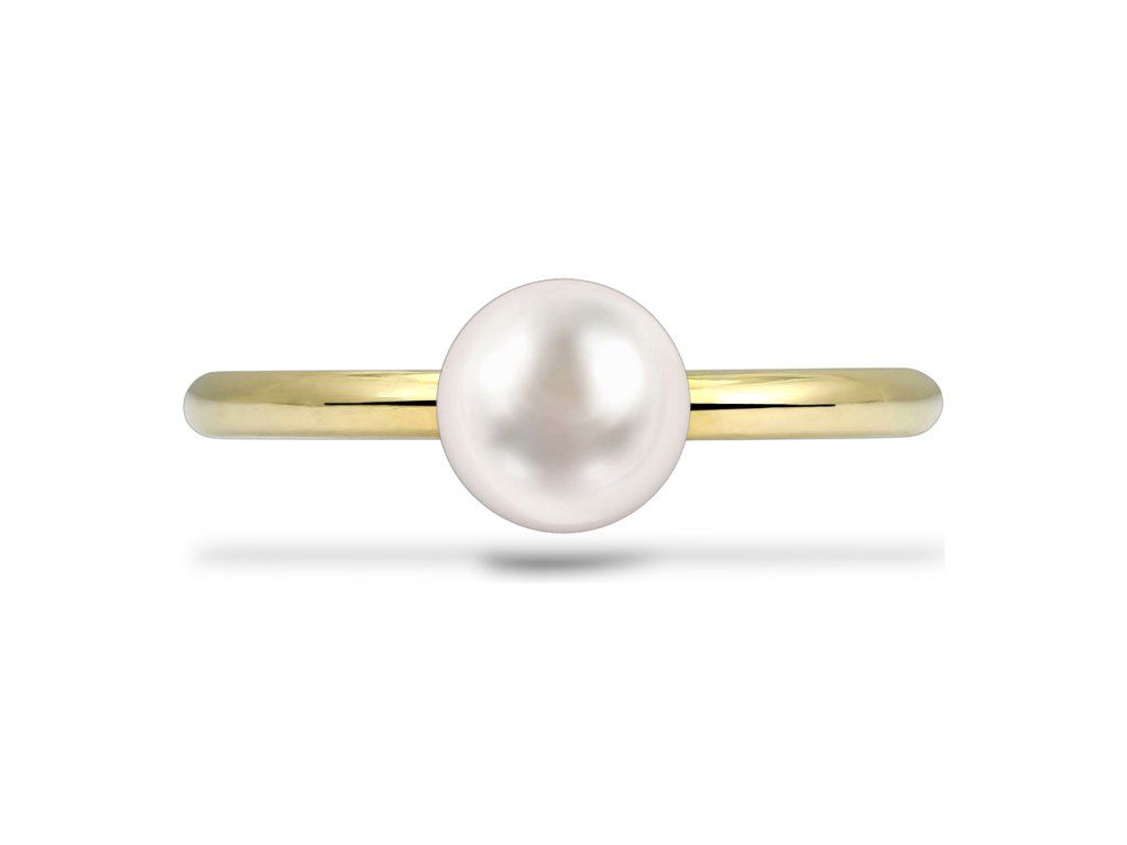 Jemný prsten s bílou perlou, žluté zlato, obroučku prstenu zdobí sladkovodní perla o průměru 8.0mm.