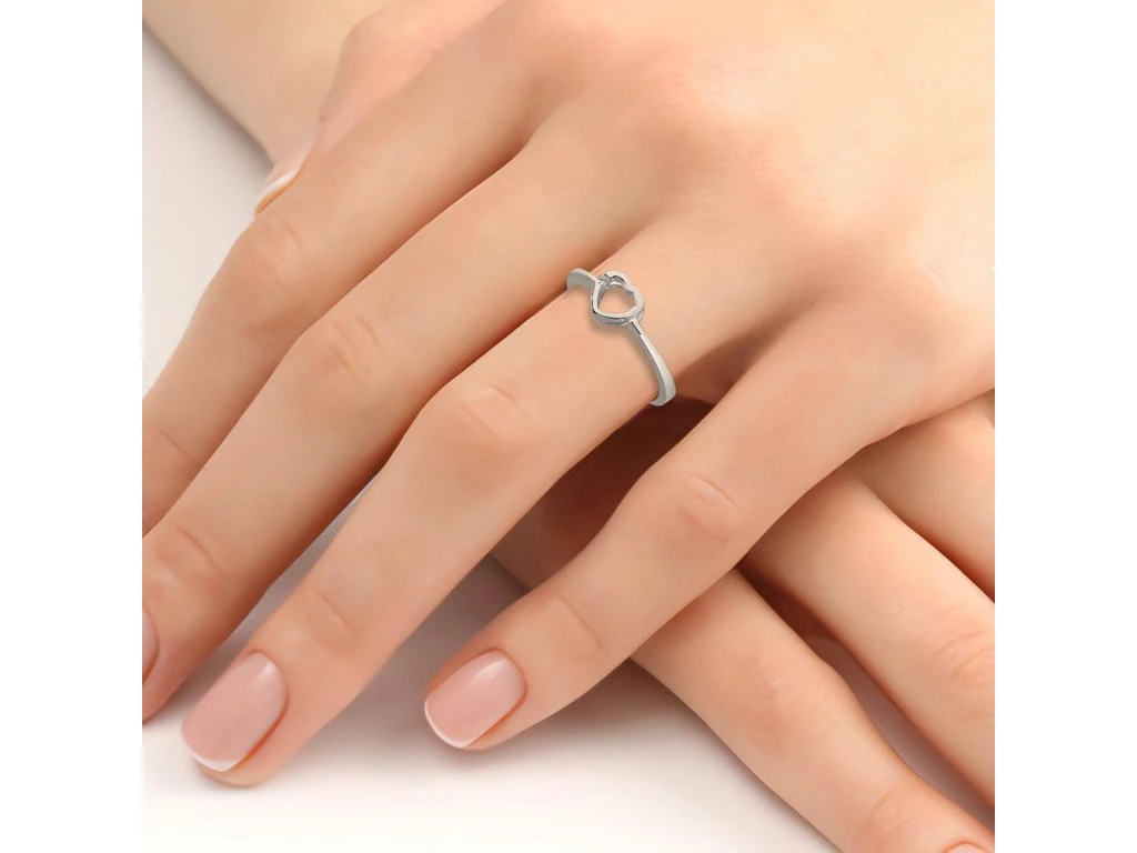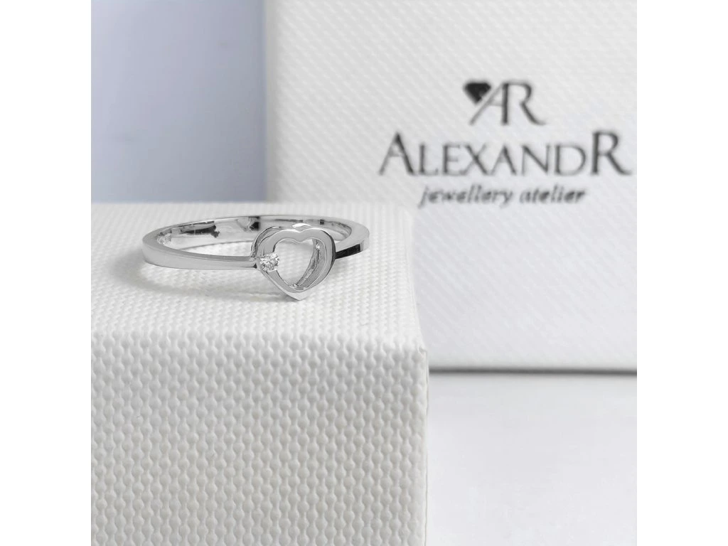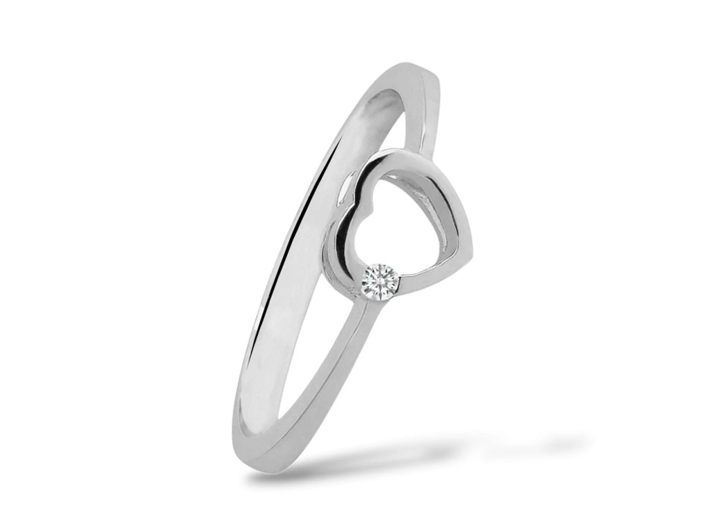 Jemný prstýnek z bílého zlata ve tvaru srdíčka zdobí 1 zářivý diamant o průměru 1.7mm.