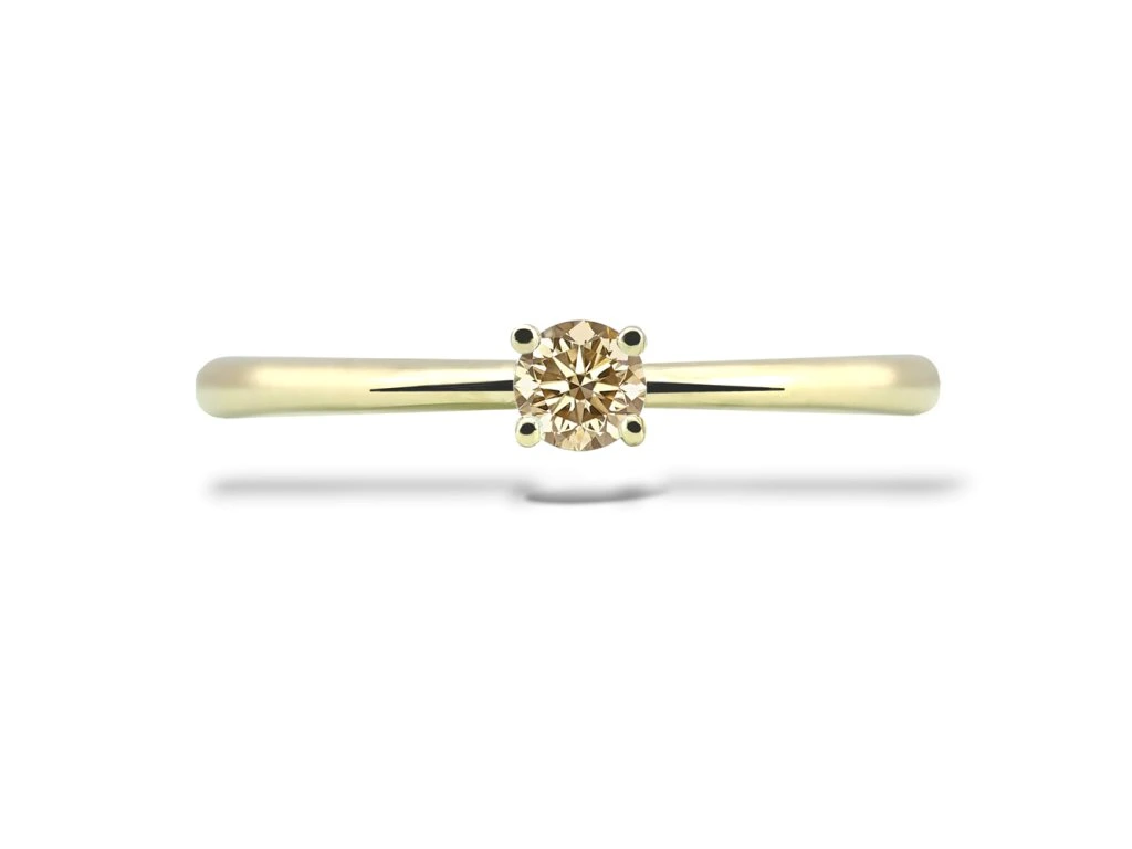 Zásnubní diamantový prsten Solitér champagne žluté zlato
