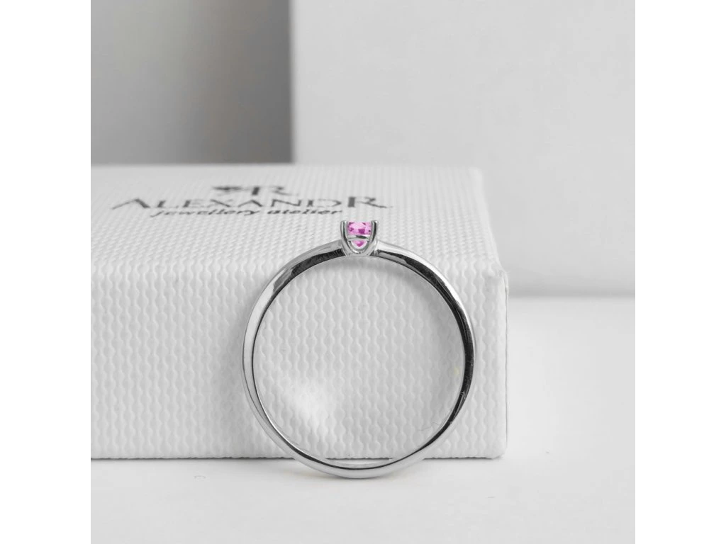 Zásnubní prsten safír růžový Solitér bílé zlato